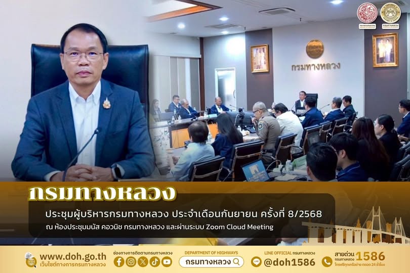การประชุมผู้บริหารกรมทางหลวง ประจำเดือนกันบายน 2568 ครั้งที่ 8/2568 ผ่านการประชุมทางไกล