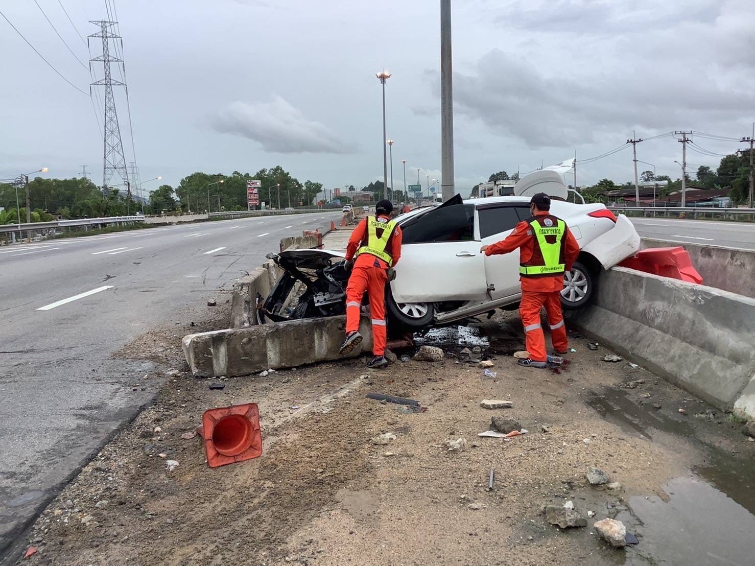 กรมทางหลวง เร่งรื้อแผงกั้นคอนกรีตที่ชำรุดบนสะพานข้ามถนนพระราม 2 (มหาชัยเมืองใหม่) แล้วเสร็จ พร้อมเปิดการจราจรตามปกติเพื่ออำนวยความสะดวกปลอดภัยให้ประชาชน