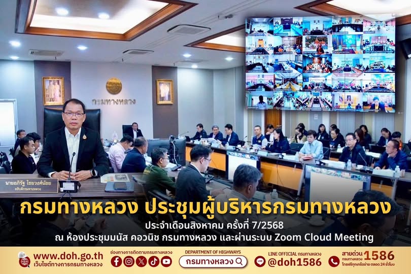 การประชุมผู้บริหารกรมทางหลวง ประจำเดือนสิงหาคม 2568 ครั้งที่ 7/2568 ผ่านการประชุมทางไกล