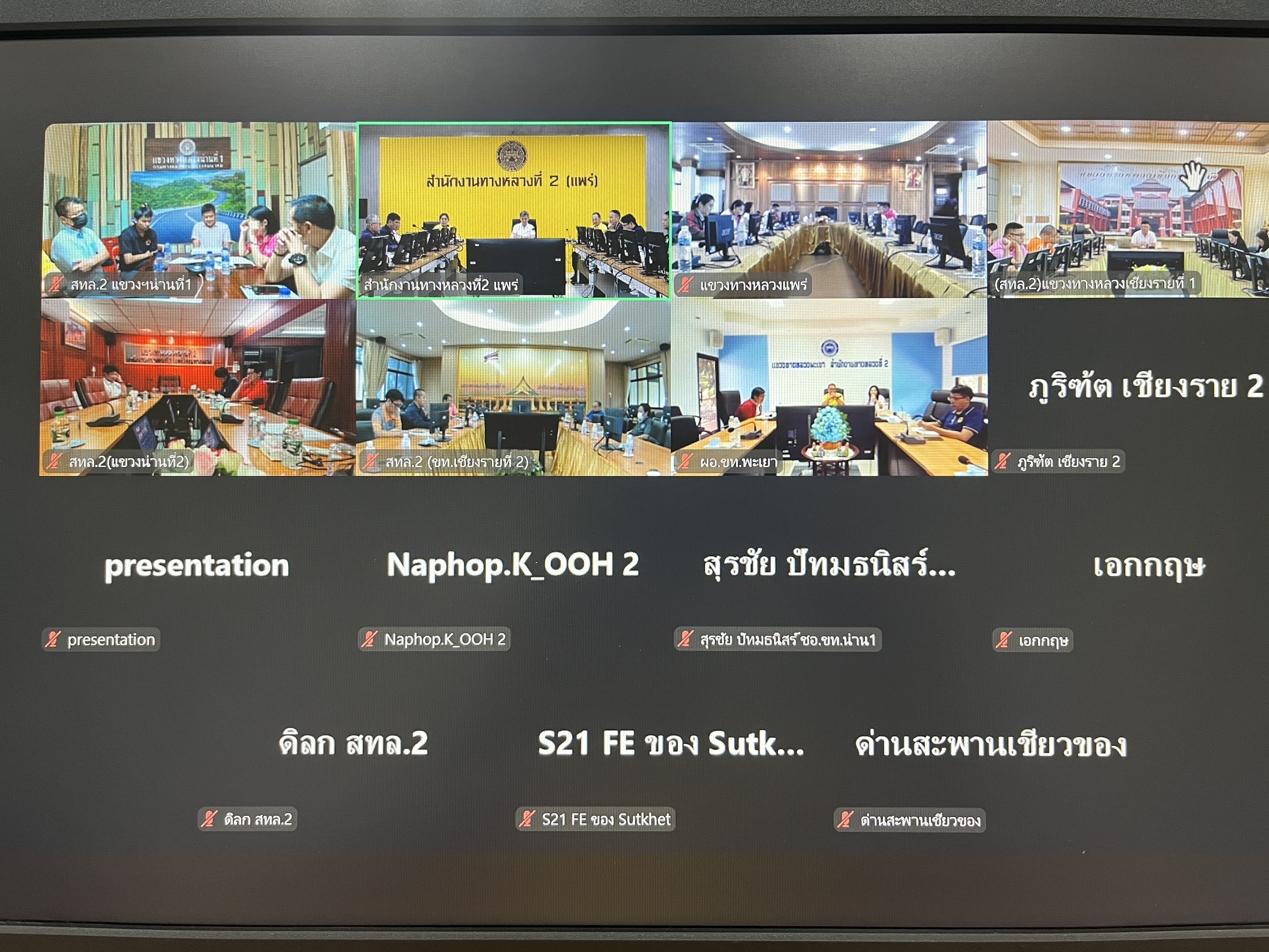 เมื่อวันอังคารที่ 2 กันยายน 2568 เวลา 10.00 น. นายสิทธิชัย วนานุเวชพงศ์ ผู้อำนวยการสำนักงานทางหลวงที่ 2 เป็นประธานการประชุมติดตามผลการดำเนินงาน ของแขวงทางหลวงในสังกัด ครั้งที่ 5/2568 โดยมีนายสุวิพุธ ตันตะโยธิน รองผู้อำนวยการสำนักงานทางหลวงที่ 2 ตำแหน่งที่ 1 นางสาวพัทธิยะ ศรีเนตร รองผู้อำนวยการสำนักงานทางหลวงที่ 2 ตำแหน่งที่ 2 พร้อมด้วยผู้อำนวยการแขวงทางหลวงในสังกัด คณะผู้บริหาร และเจ้าหน้าที่ เข้าร่วมประชุม ฯ ร่วมแลกเปลี่ยนความคิดเห็น ณ ห้องประชุมอาคารเวียงโกศัย สำนักงานทางหลวงที่ 2 (แพร่) และผ่านการประชุมทางไกล ด้วยระบบ Zoom Cloud Meeting